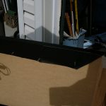 55 degrees was perfect to get some more work done. First, the way I had the rear vinyl stapled to hold it down looked terrible so I used some hardwood to fix it up,